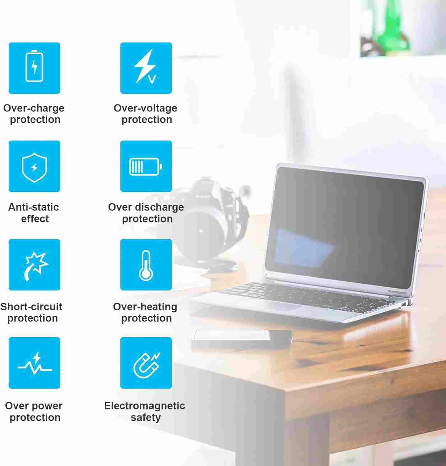 Safe & Certified: Built-in overcharge, overheat, and short-circuit protection. Certified to meet CE, RoHS, and FCC standards.