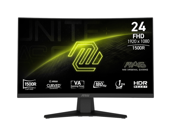 - Immersive 24″ Curved Display (1500R) delivers rich visuals and wraparound gameplay with a Full HD VA panel.