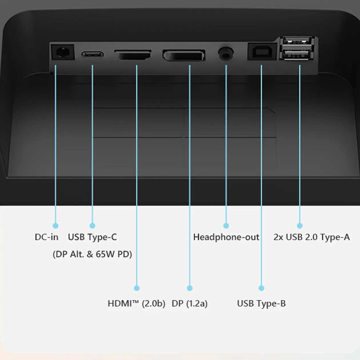 - Versatile Connectivity: Equipped with HDMI, DisplayPort, and USB Type-C (65W PD) ports for flexible connections.