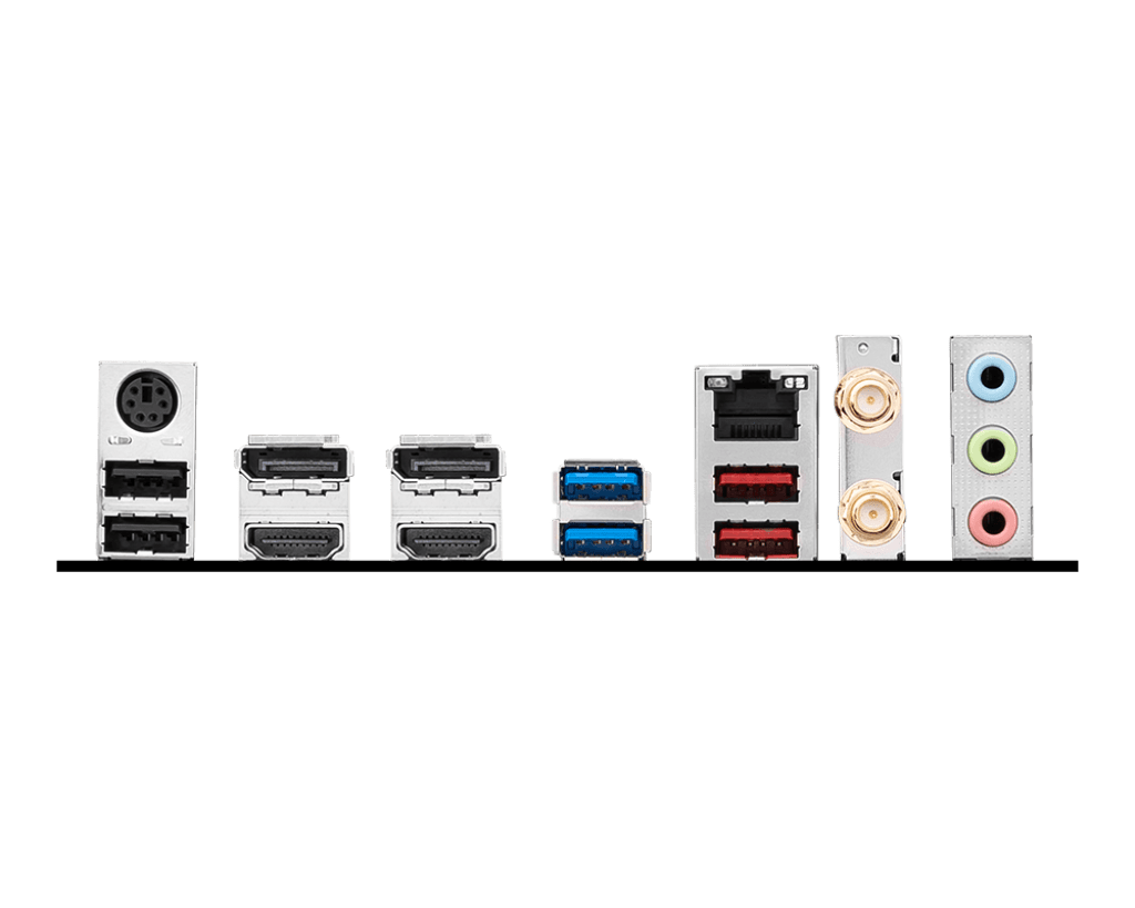 • USB Ports: 6 × USB (2 × USB 2.0, 2 × USB 3.2 Gen 1, 2 × USB 3.2 Gen 2)