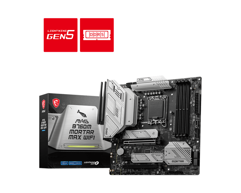 • Micro-ATX motherboard using Intel B760 chipset, supporting 12th / 13th / 14th Gen Intel Core, Pentium, and Celeron CPUs (LGA 1700)